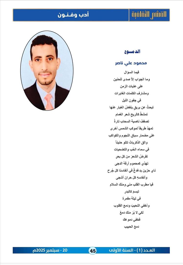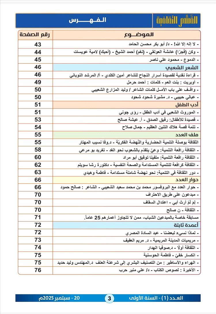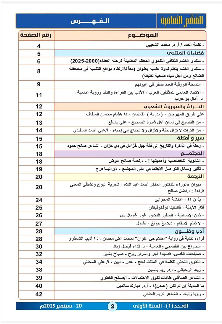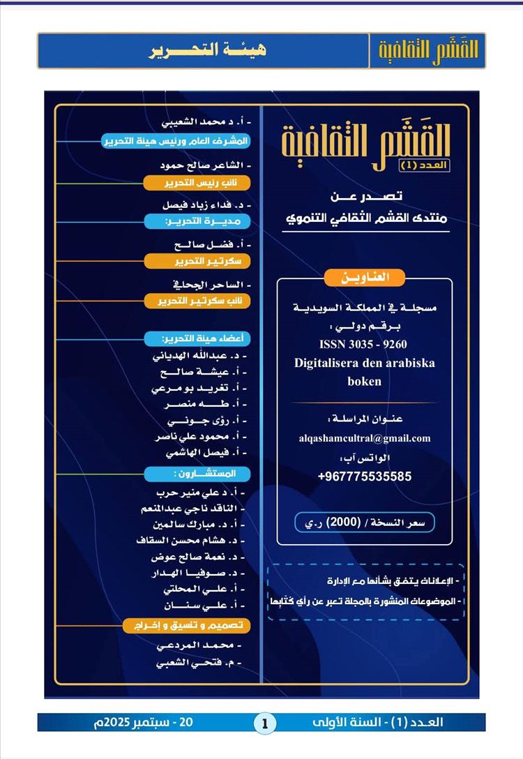 يسر أسرة مجلة القشم الثقافية أن تصدر العدد(1) بنسختها الورقية والإلكترونية ويتضمن العديد: