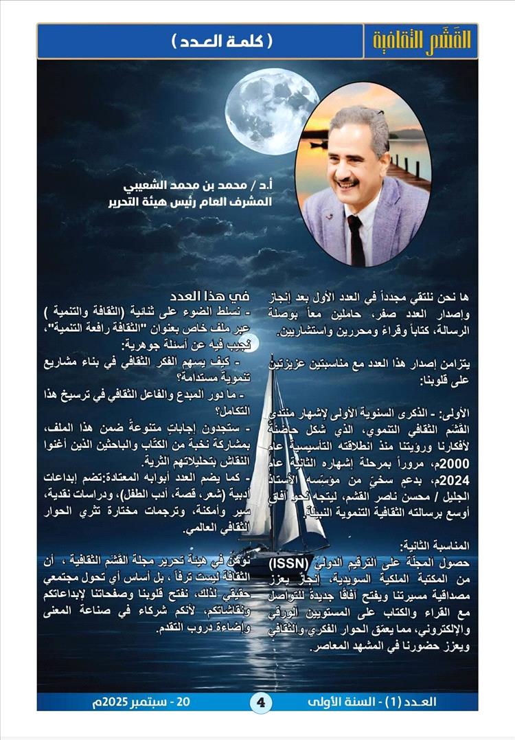 صدور العدد (1) من مجلة القشم الثقافية، بنسختيها الورقية والإلكترونية.