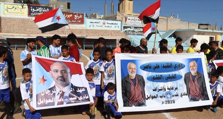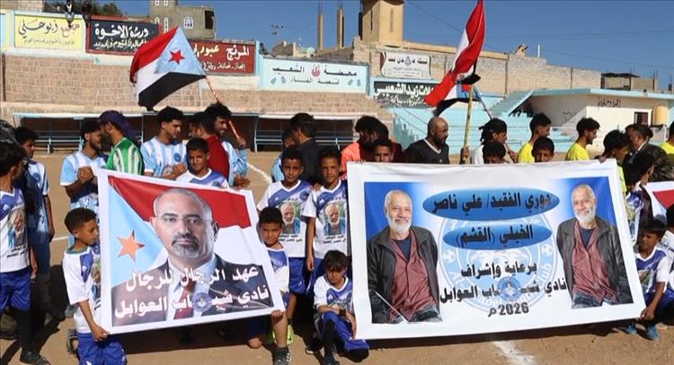 وسط إستعدادات كبيرة وتنظيم رائع وبمشاركة 10 فرق رياضية،إنطلق عصر اليوم الأربعاء 15-4-2026 بمديرية الشعيب محافظة الضالع دوري الفقيد العميد بحري علي ناصر قاسم الخيلي القشم عليه رحمة الله والذي يقام بدعم ورعاية إدارة نادي شباب العوابل الرياضي.وفي مباراة الإفتتاح وعلى ملعب شهداء العوابل إلتقى فريق النصر صاحب القميص الأصفر مع فريق الإتحاد صاحب القميص الأزرق"البداية كانت مع الشوط الشوط الأول حيث سجل فريق النصر هدفه الأول في الدقيقة 4 وذلك عبر لاعبه النجم قايد محمد"واستمر اللعب بتنافس رائع ووتيرة رياضية عالية حتى نهاية الشوط والذي تقدم فيه فريق النصر بهدف نظيف دون مقابل للإتحاد.