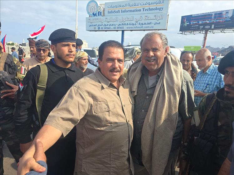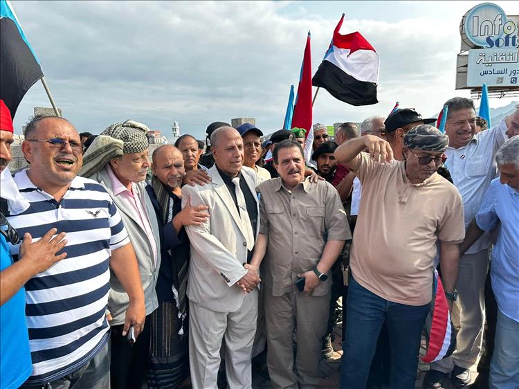 المستشار محسن القشم يشارك في موكب أبناء الشعيب الواصل إلى ساحة الإعتصام بالعاصمة عدن
