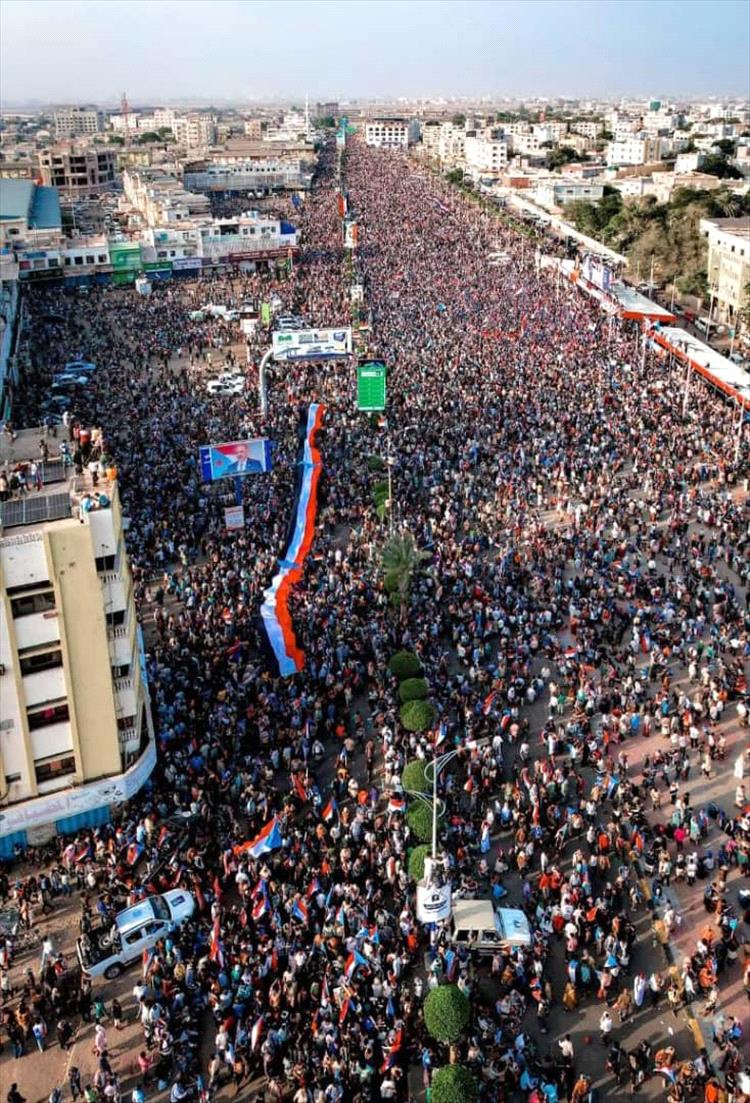 هذا وقد احتشد مئات الآلاف من أبناء الجنوب من مختلف محافظات الجنوب للمشاركة في مليونية الثبات والإرادة والتصعيد الشعبي المستمر والتي أتت للدعوة التي أعلنها الرئيس عيدروس الزًبيدي مسبقاً.