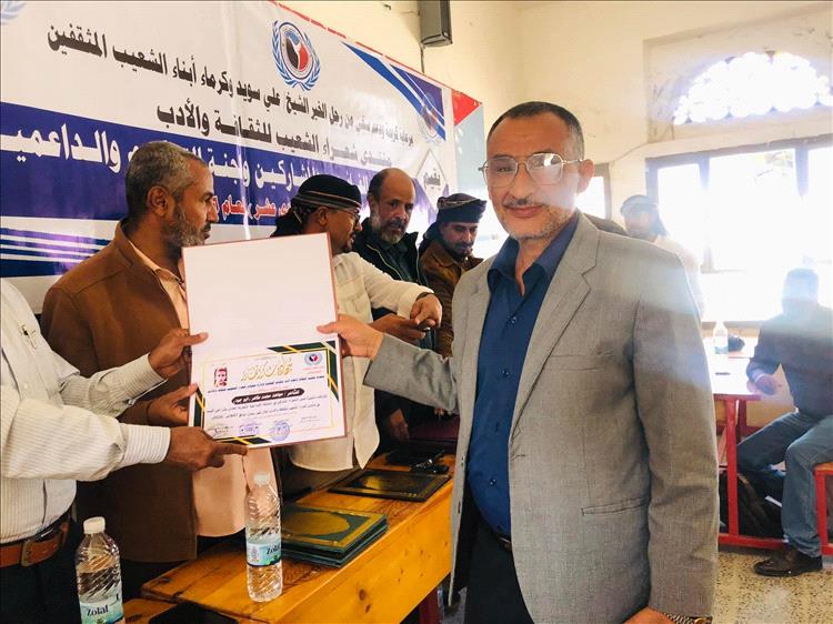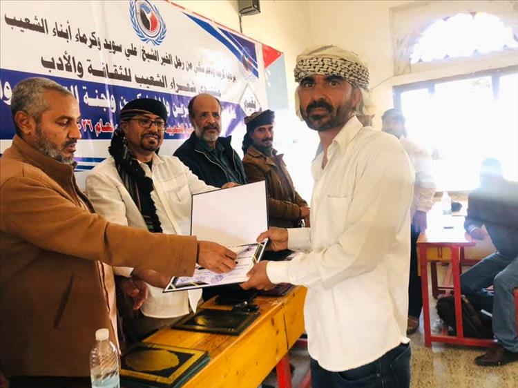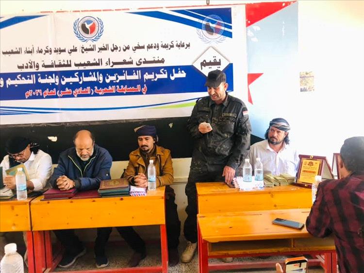 برعاية كريمة وبدعم سخي من رجل الخير الشيخ علي سويد وأبناء الشعيب المثقفين أقيم صباح الخميس الماضي حفل تكريم لمنتدى شعراء الشعيب محافظة الضالع بنسخته 11 للعام 2026 وذلك بحضور قيادة السلطة المحلية والمجلس الإنتقالي وأعضاء من الهيئة الإدارية لمنتدى القشم الثقافي التنموي ورئيس إتحاد الأدباء وكتاب الجنوب بالضالع وشعراء وأدباء ومشائخ وأعيان وشخصيات اجتماعية من مختلف مديرية الشعيب.