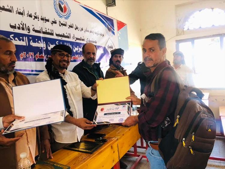 وفي ختام الحفل قام مدير عام المديرية رؤوف الجعفري ورئيس المجلس الإنتقالي يحيى عباد والأمين العام للسلطة المحلية وأمين عام منتدى القشم الثقافي التنموي صالح المشرقي بتكريم الخمسة الفائزين وكل الشعراء المشاركين ولجنة التحكيم والداعمين ورئيس المنتدى ومدير الثقافة بالمديرية وذلك بدروع ذهبية وفضية وشهائد تقديرية والعديد من الجواز المادية التي نالت إستحسان الحاضرين