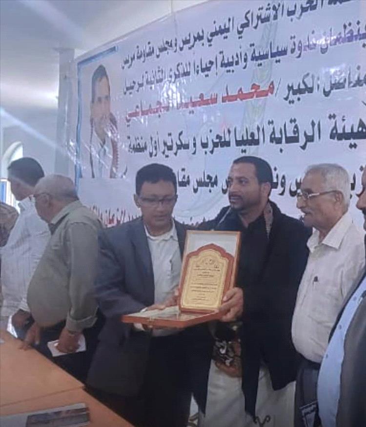 في ندوة فكرية حاشدة أقامتها سكرتارية منظمة الحزب الاشتراكي في مريس"وبالشراكة مع مقاومة مريس" أحيت قاعة كلية النخبة بمدينة الجبارة منطقة مريس مديرية قعطبة الذكرى الثانية لرحيل المناضل والشاعر الشيخ محمد سعيد الجماعي"نائب قائد مقاومة مريس وسكرتير منظمة الحزب الإشتراكي في المديرية"وعضو لجنة الرقابة العليا"